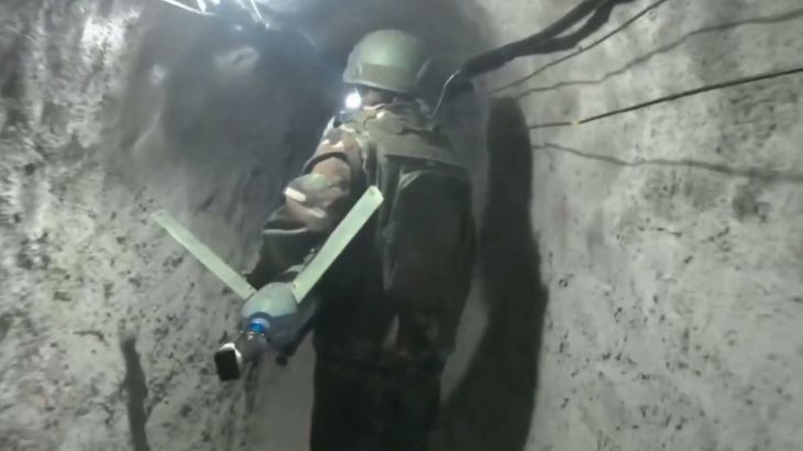وأظهرت المشاهد عددا من مقاتلي حزب الله داخل أحد الأنفاق وهم يحملون مسيّرات انقضاضية، ثم يضعونها فوق الأرض ويطلقونها باتجاه قاعدة "عين زيتيم".